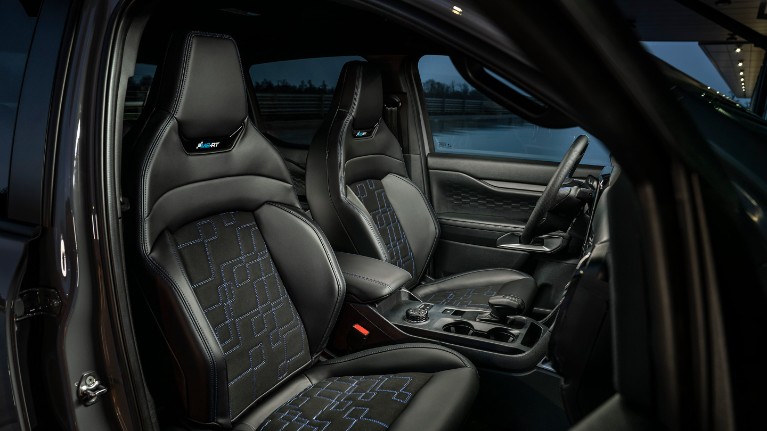 Les sièges MS-RT Sport sont dotés d'un rembourrage unique et sont garnis de cuir Eco-Leather® et de daim synthétiques haut de gamme. Ils arborent le logo MS-RT juste sous l'appuie-tête et des surpiqûres bleues contrastées subtiles. Minutieusement fabriqué à la main. Finitions sur mesure. Ces sièges offrent style et confort.